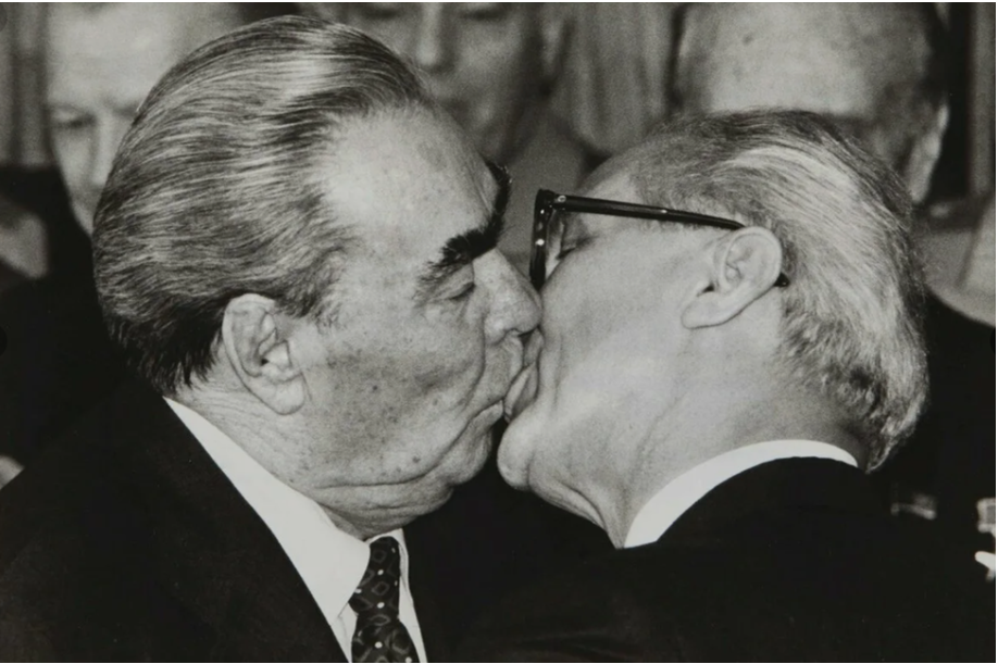 Кажется, на этой фотографии Брежнев целует в губы Хоннекера (глава ГДР). Впрочем, я не нашел подписи под этим фото. Поправьте меня, если это не так.