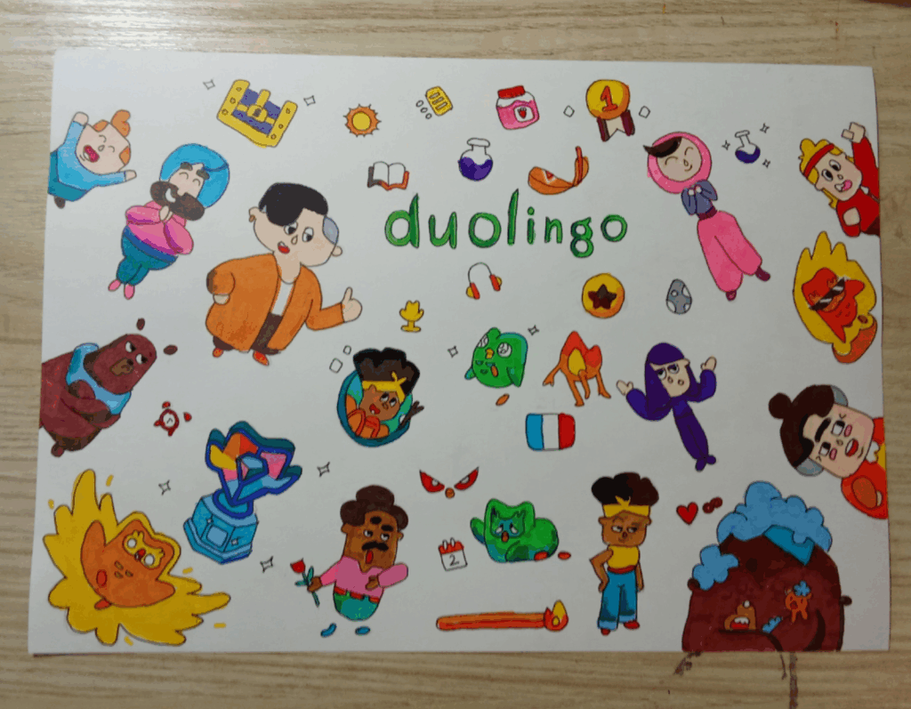 О том, насколько популярная система DuoLingo, свидетельствует народное творчество в группе фанатов в сети ВК, где образовалось целое сообщество «любителей Зеленой Совы». На скриншот 4 Вы видите, как художник нарисовала персонажей, повторяющихся в разных обучающих языковых сюжетах на DuoLingo. Усатый дядька в розовой рубашке внизу — это как раз шахматист Оскар… 🙂
