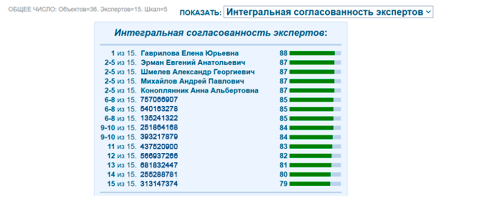 Скриншот 1. Рейтинг экспертов по убыванию согласованности.