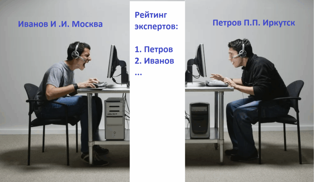 Как это происходит? — Каждому эксперту дается задача выступить последовательно в двух ролях: