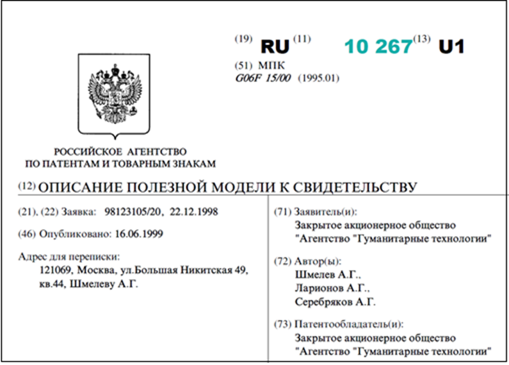 Скриншот 1. Копия патента на полезную модель с приоритетом от 1998 года.