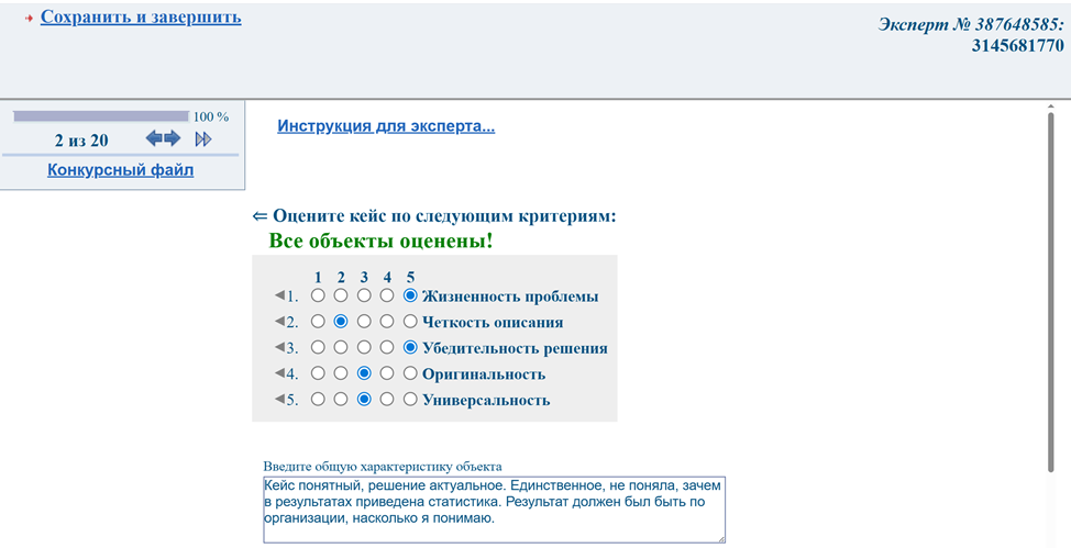 Скриншот 5. Основной интерактивный режим в ходе экспертизы качества кейсов на платформе Ht—Line 2.0. Как видим, эксперт зашифрован под определенным ИД-номером (см. правый верхний угол экрана).