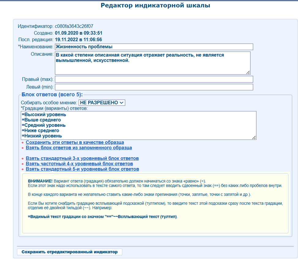 Скриншот 6. В системе Ht—Line 2.0 создан развитый редактор отдельных шкал для оценки качества кейсов. В данном случае мы видим, как автор процедуры может добавить развернутое описание критериальной шкалы «Жизненность проблемы».