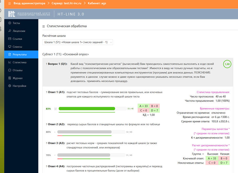 Скриншот 3. Режим онлайн-экспертизы тестовых заданий на платформе Ht—Line 2.0