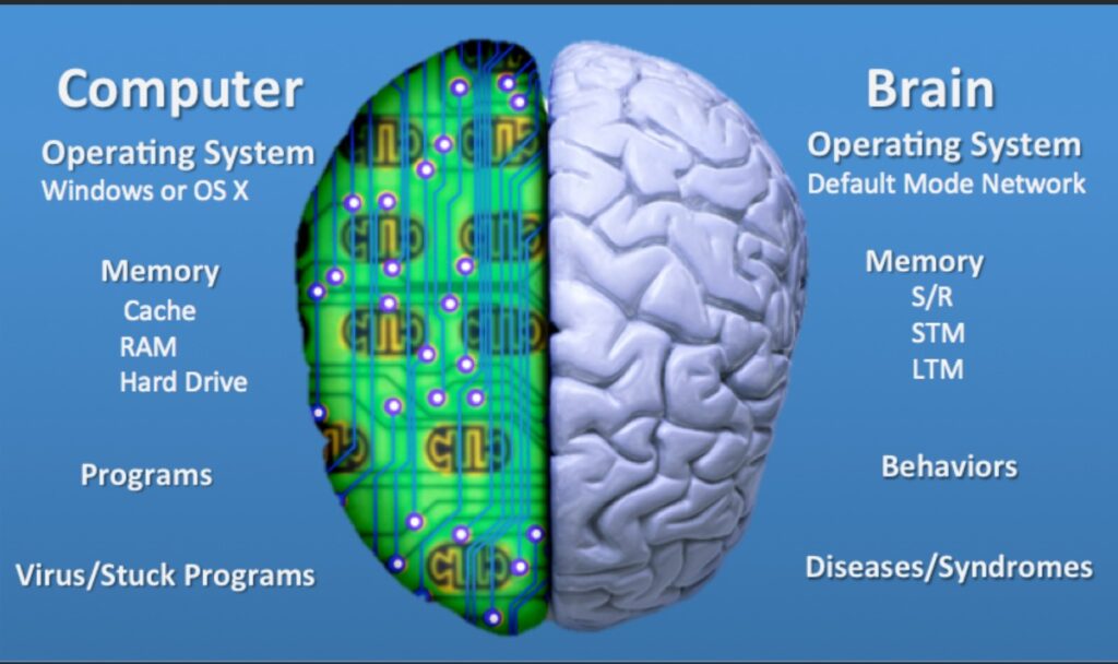 В настоящее время в психологии представления о человеческом мозге как о биокомпьютере завоевывают все более широкий круг сторонников. Соответственно психика рассматривается в этом контексте как система программного обеспечения такого биокомпьютера. Наличие буквально на ладонях довольно мощных электронных устройств (смартфонов и других гаджетов) содействует массовому рассуждению о психике человека по аналогии с компьютером.
