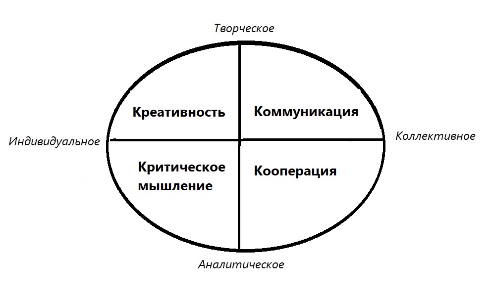 - модель метакомпетенций 4К (критическое мышление, креативность, кооперация, коммуникация);